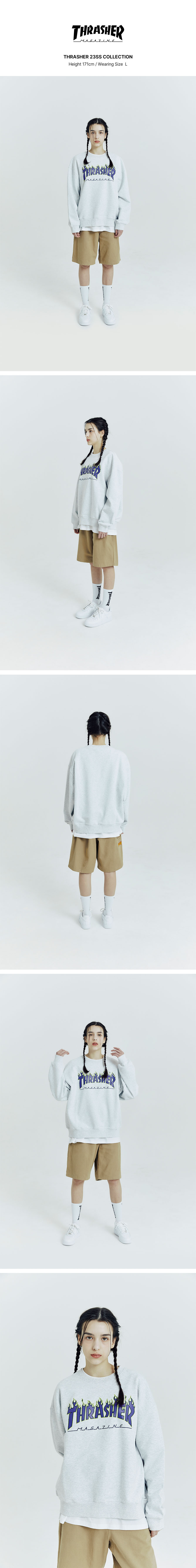 트레셔 플레임 로고 맨투맨 라이트 그레이