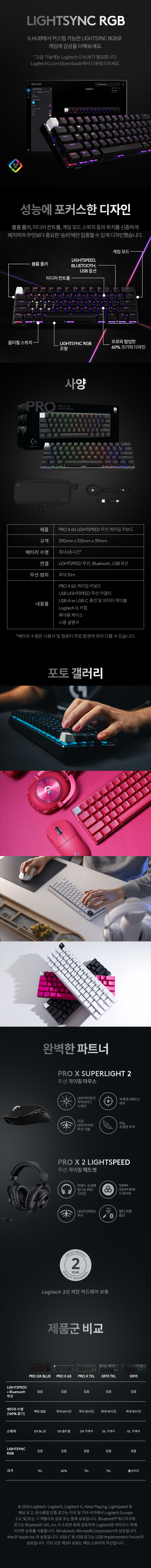 로지텍G PRO X60 TKL Magenta Tactile 핑크