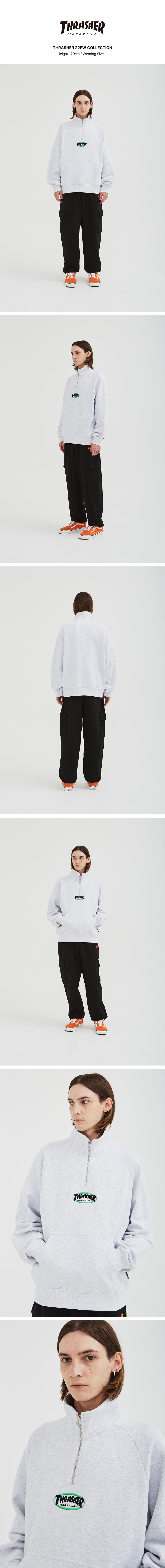 트레셔 매거진 로고 하프 집업 스웻셔츠 라이트 그레이