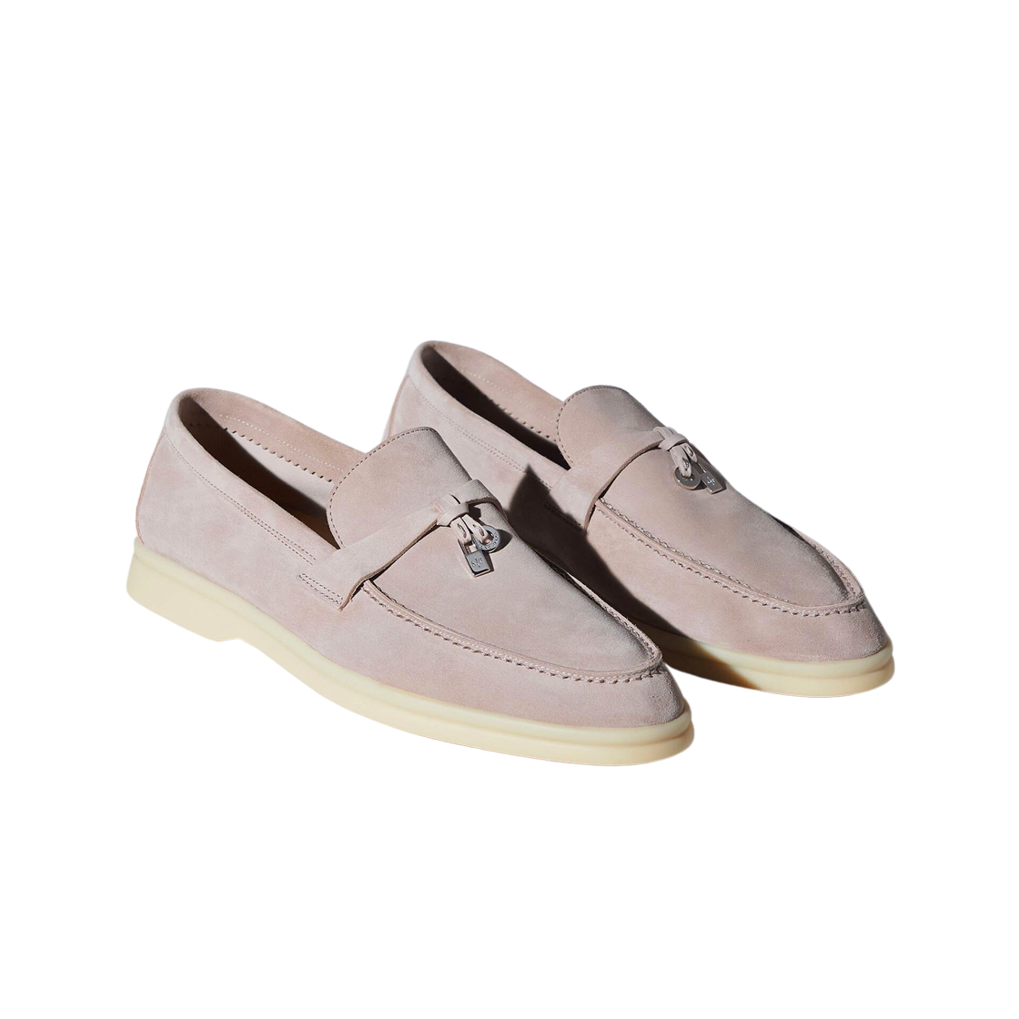 (W) Loro Piana Summer Charms Walk Suede Calfskin Pearl Powder