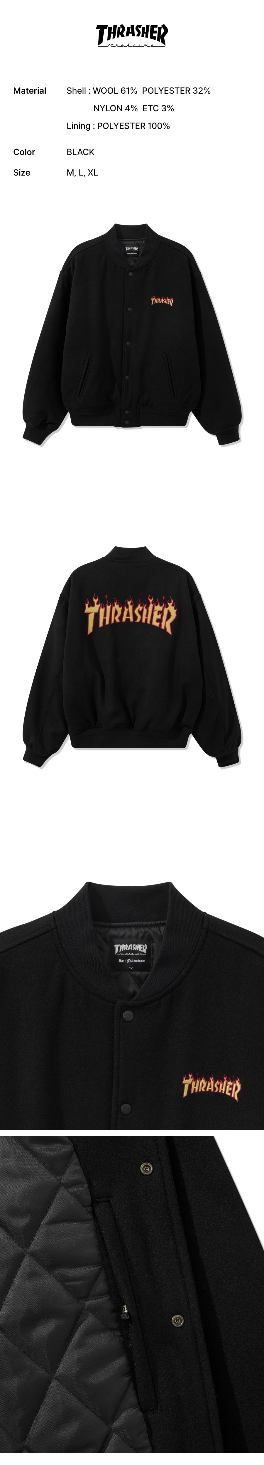 트레셔 플레임 울 바시티 자켓 블랙