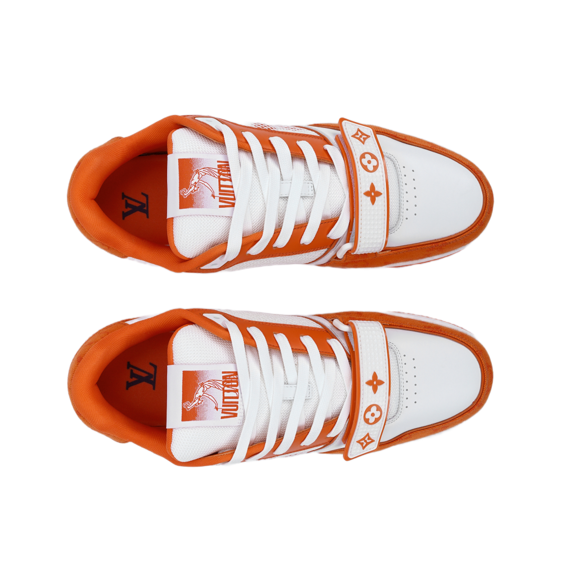 Louis Vuitton Velcro Strap LV Trainer Sneaeker Monogram Denim Orange