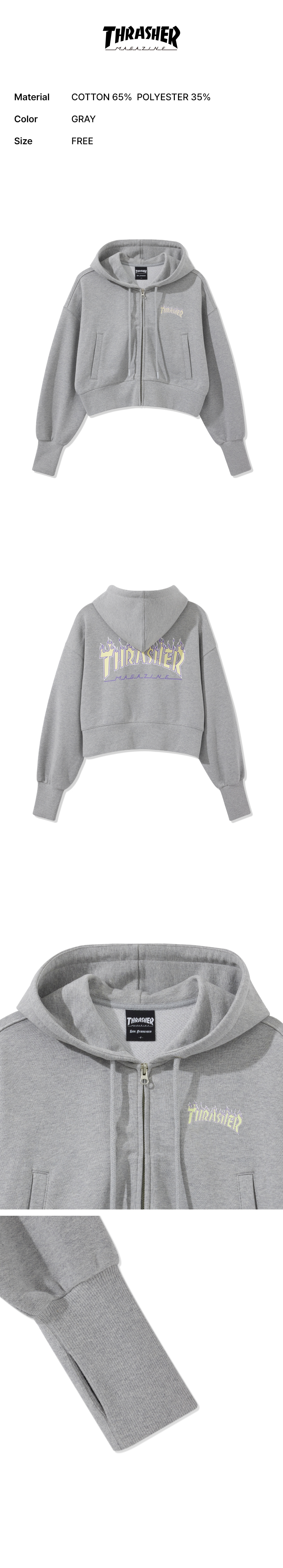 트레셔 우먼 플레임 크롭 후드집업 그레이