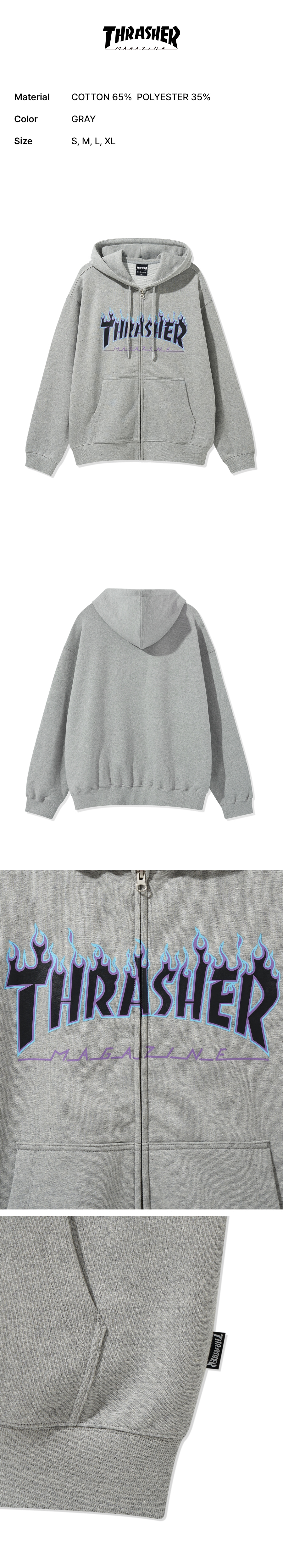 트레셔 빅 플레임 로고 후드집업 그레이