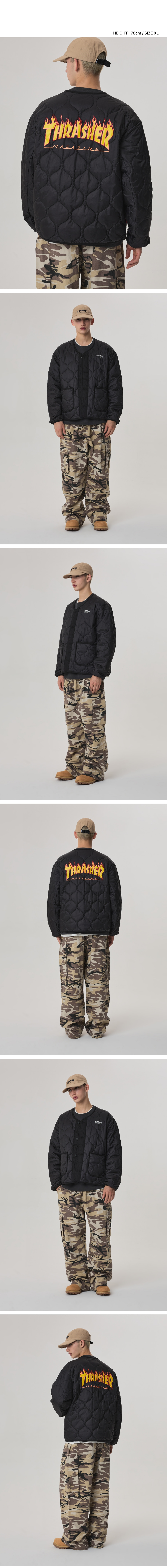 트레셔 플레임 로고 퀼팅 자켓 블랙