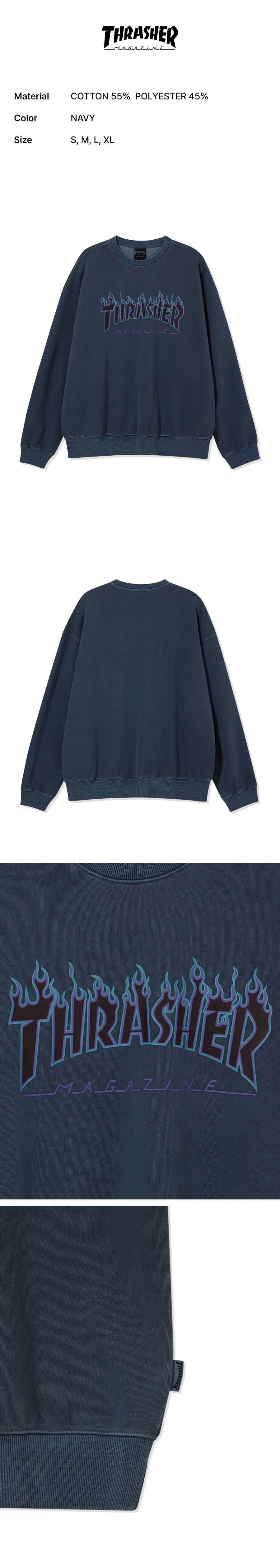 THRASHER Flame Pigment Dyeing Sweatshirt Navy