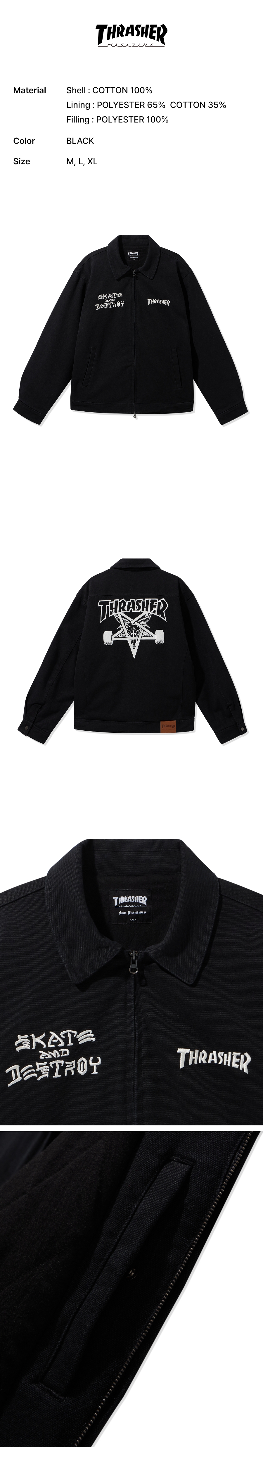 THRASHER Pentagram Cotton Jacket Black