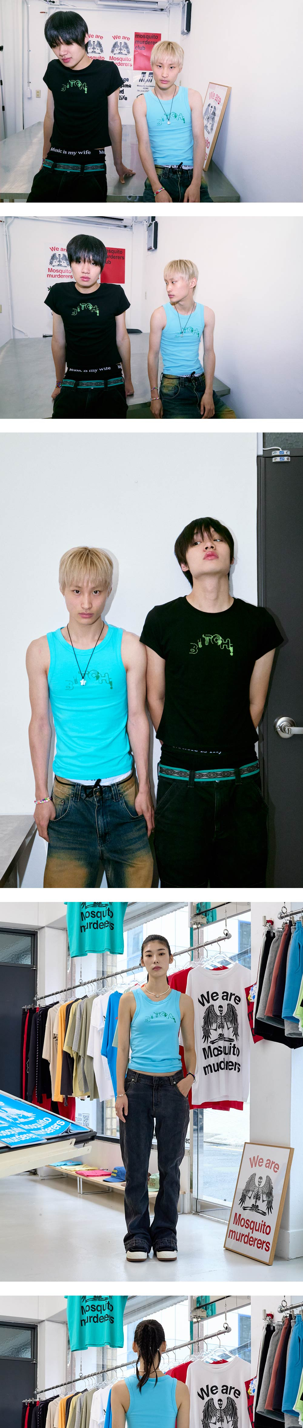 172cm (5’7”) / 54kg (119lb) 168cm(5’5”) / 48kg(105lb) 172cm (5’7”) / 54kg (119lb) - COTTON 60% POLYESTER 35% SPAN 5% - 신축성이 있는 부드러운 텍스처 - 탄탄한 봉제로 내구성이 우수하며 완성도 높은 실루엣 - 덤블워싱, 텐타 가공을 거쳐 오랜시간 착용 및 세탁시에도 옷의 변형을 최소화 - 벗겨지거나 바래지 않는 선명한 프린팅 Mosquito murderers의 모든 의류는 한땀 한땀 사람의 손으로 탄생됩니다. 세탁시 케어라벨을 확인해 주시고, 프린팅의 손상을 최소화 하기 위해 옷을 뒤집어 세탁하는 것을 권장합니다.
