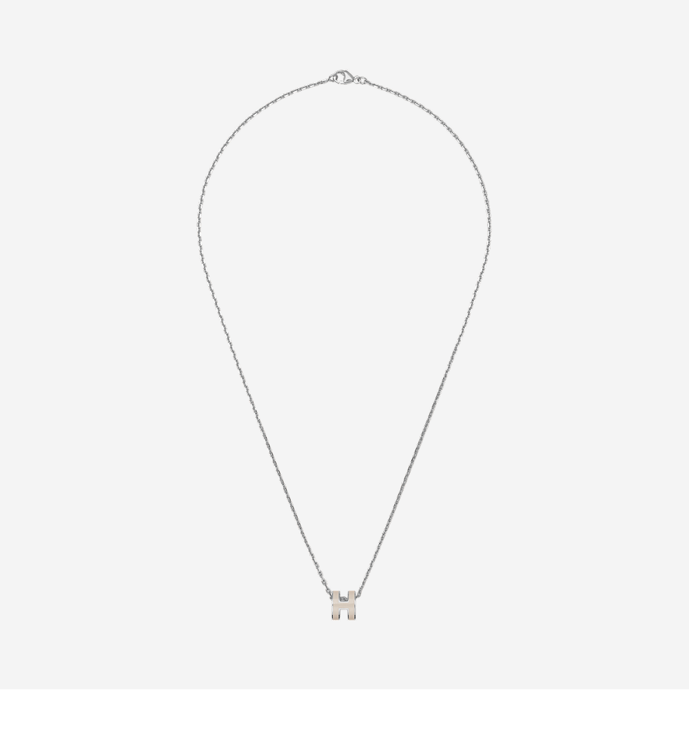 (W) Hermes Mini Pop H Pendant Palladium & Marron Glace