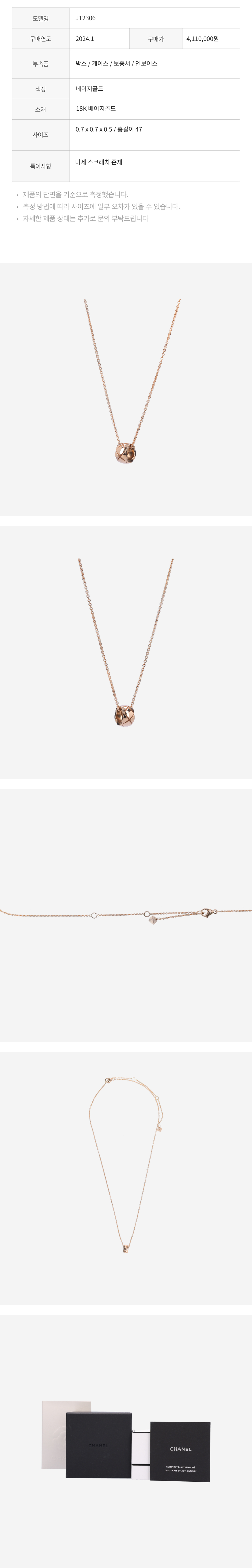 샤넬 J12306 코코 크러쉬 네크리스 18K 베이지 골드