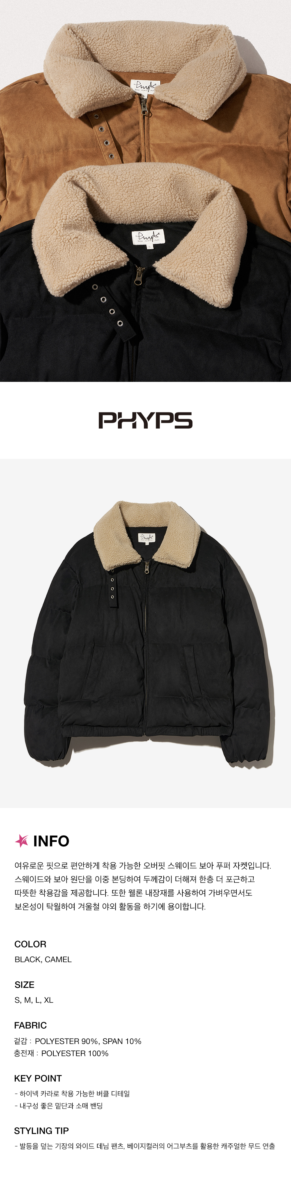 피지컬 디파트먼트 스웨이드 보아 카라 푸퍼패딩 블랙
