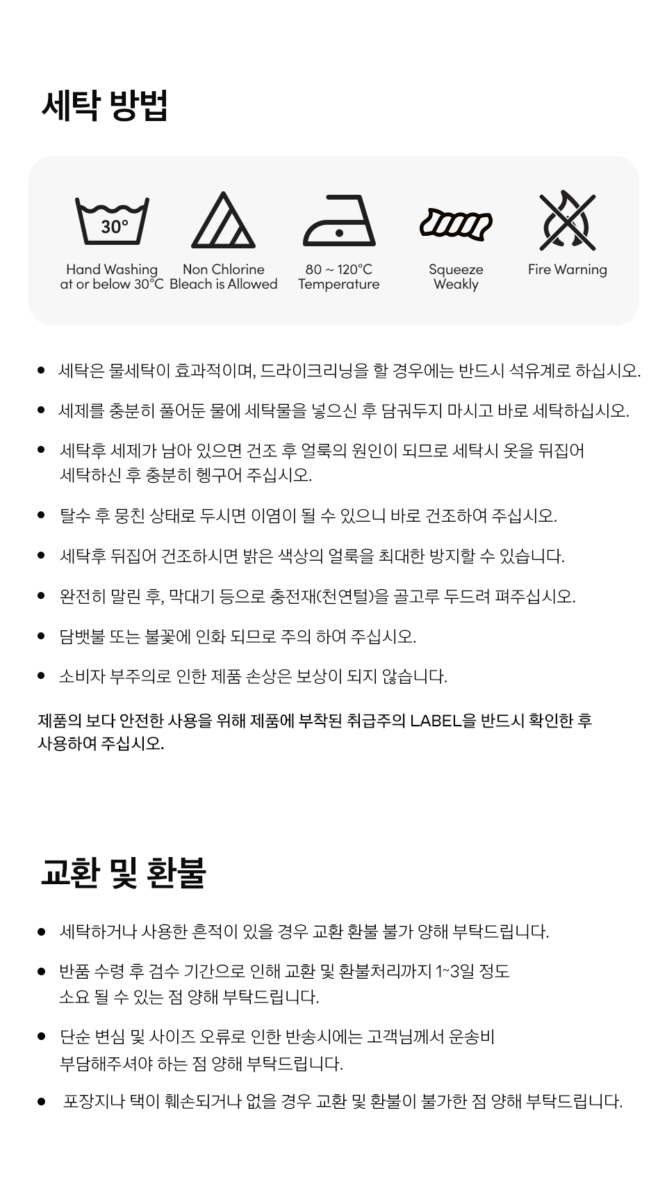 교환 및 반품 안내