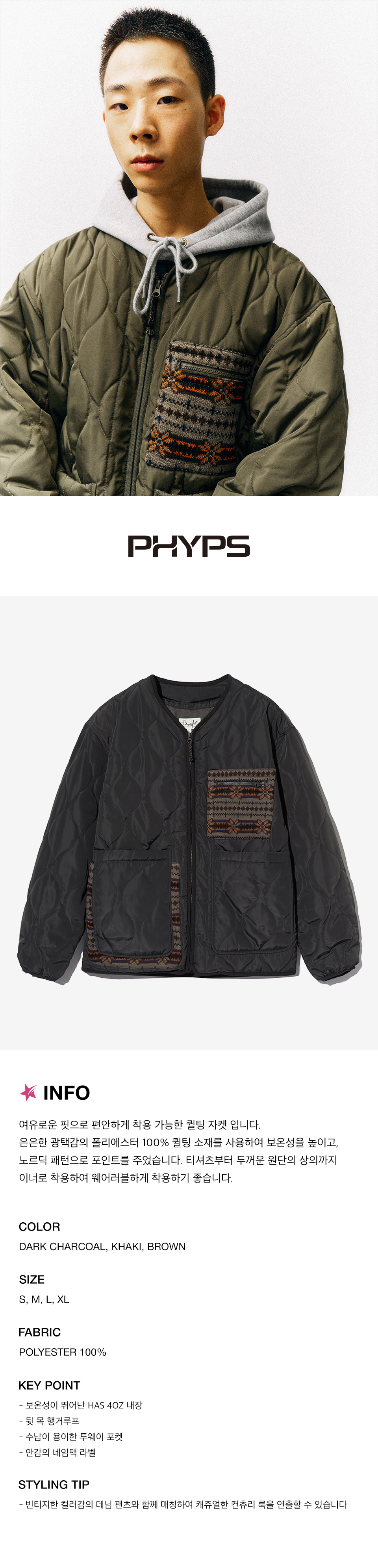 피지컬 디파트먼트 니트믹스 투웨이 포켓 퀼팅자켓 다크차콜
