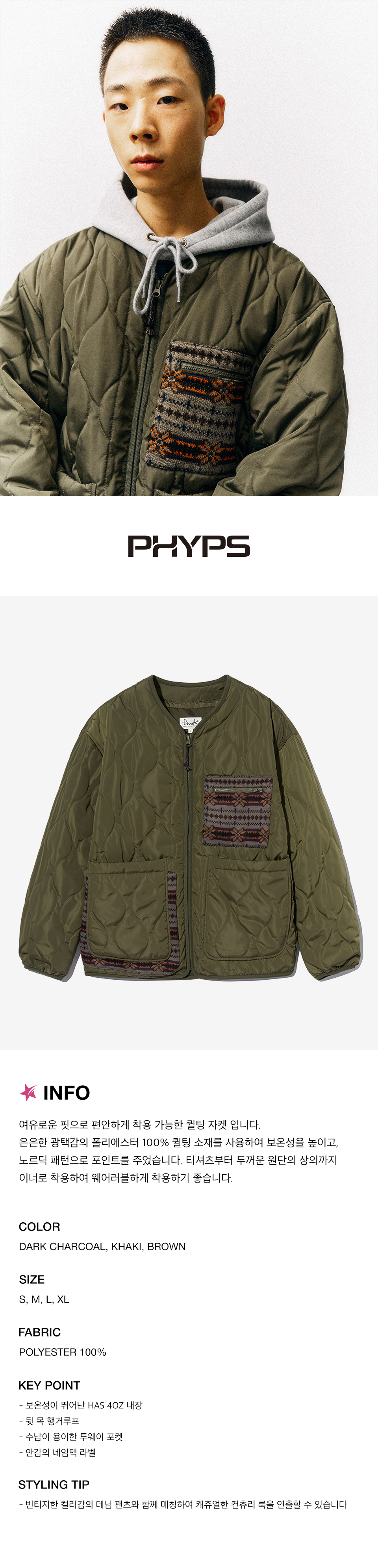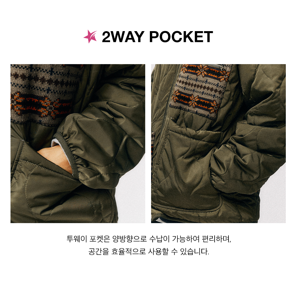 피지컬 디파트먼트 니트믹스 투웨이 포켓 퀼팅자켓 카키
