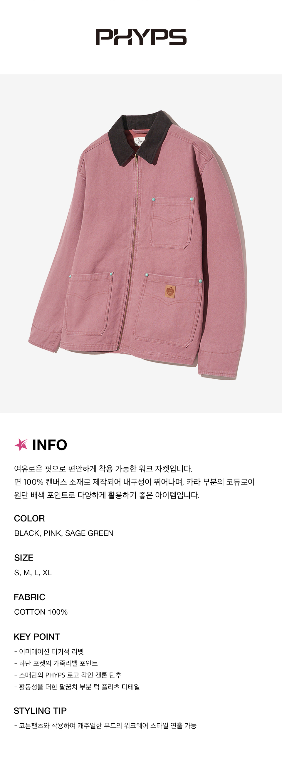 피지컬 디파트먼트 리벳 포인트 워크자켓 핑크