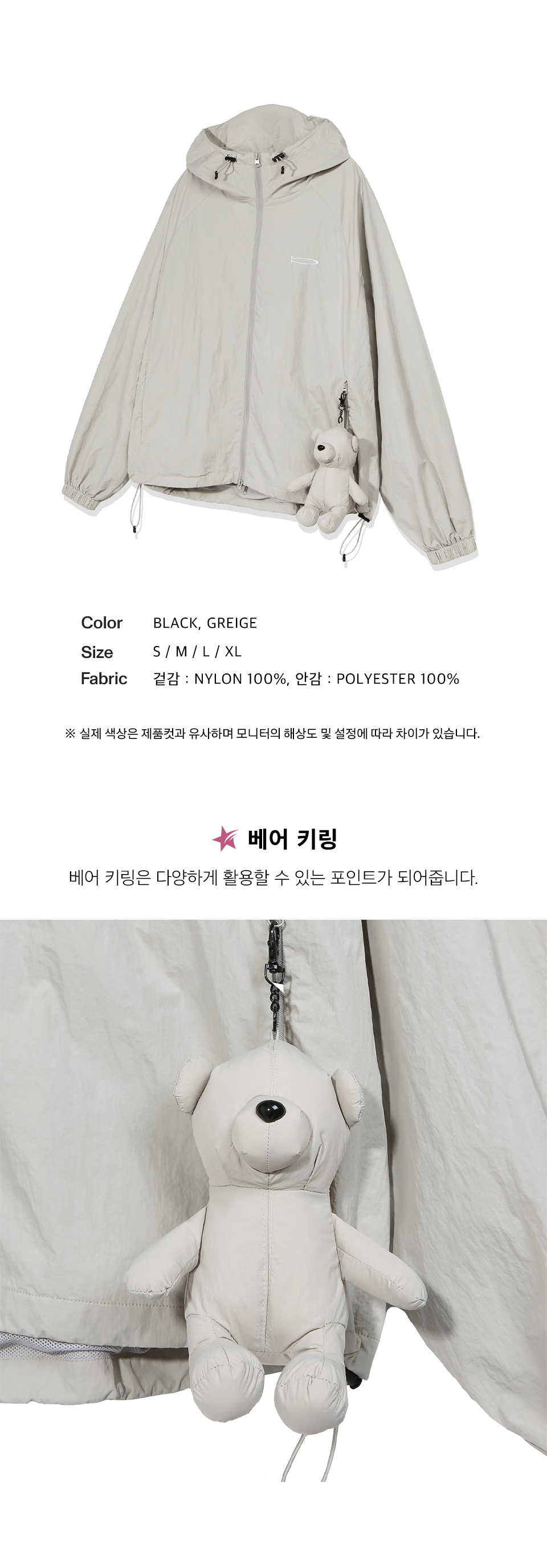 피지컬 디파트먼트 베어키링 윈드 브레이커 그레이지
