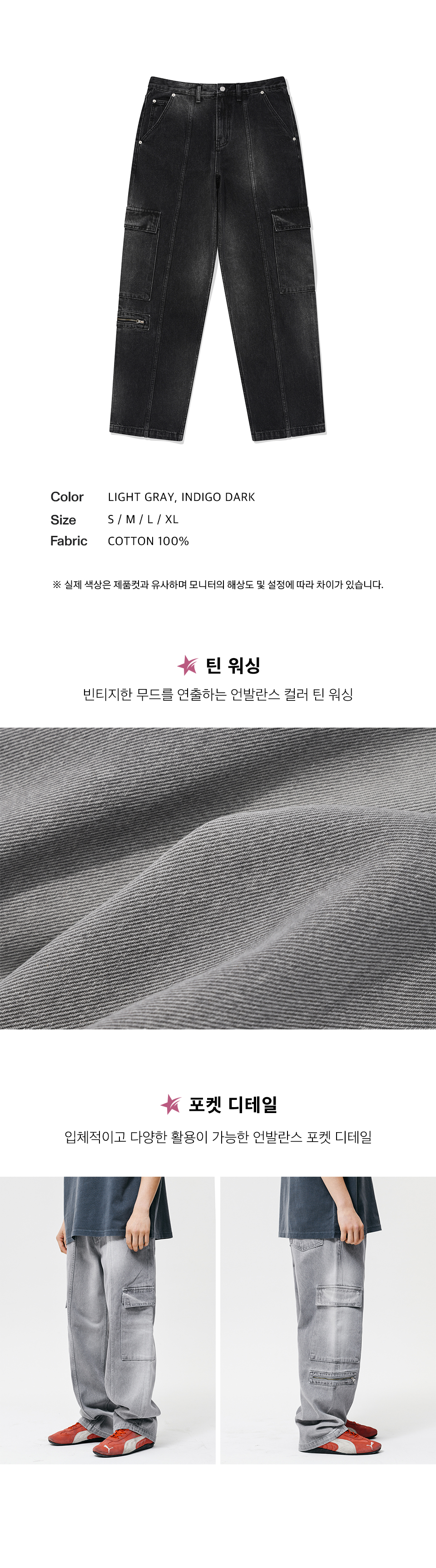 피지컬 디파트먼트 언발란스 워싱 카고 팬츠 인디고 다크