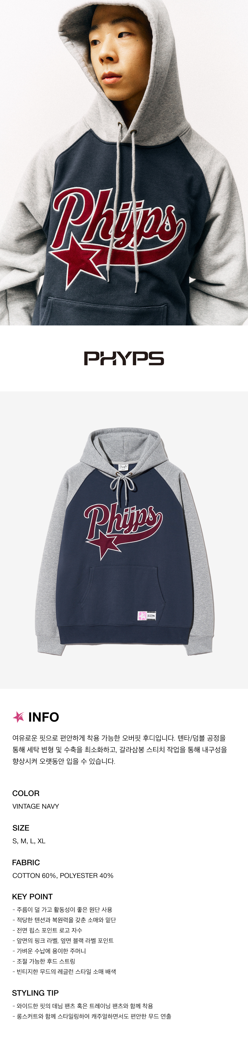 피지컬 디파트먼트 아플리케 스타테일 래글런 후드빈티지 네이비