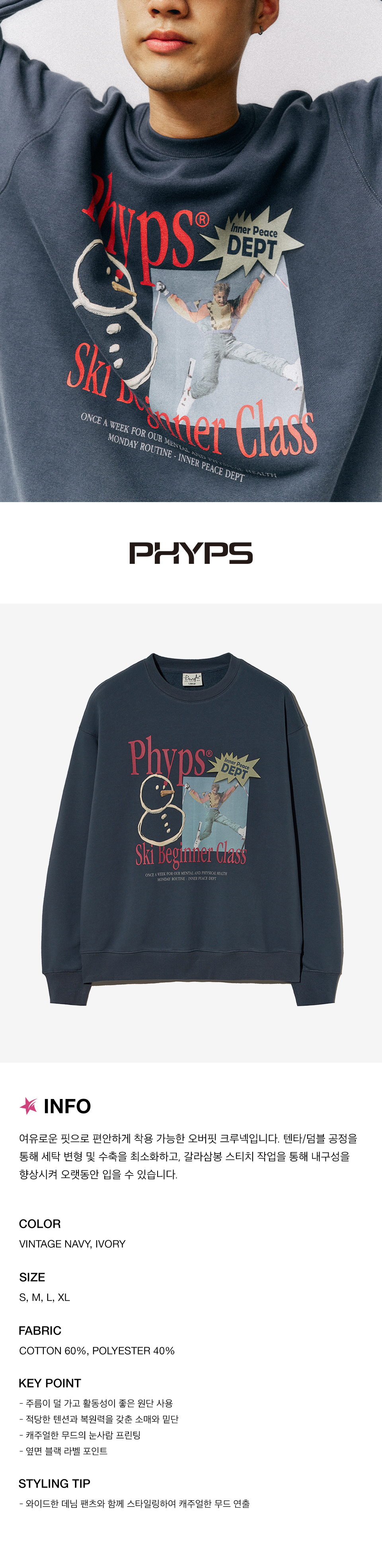 피지컬 디파트먼트 스키 비기너 클래스 크루넥 빈티지 네이비