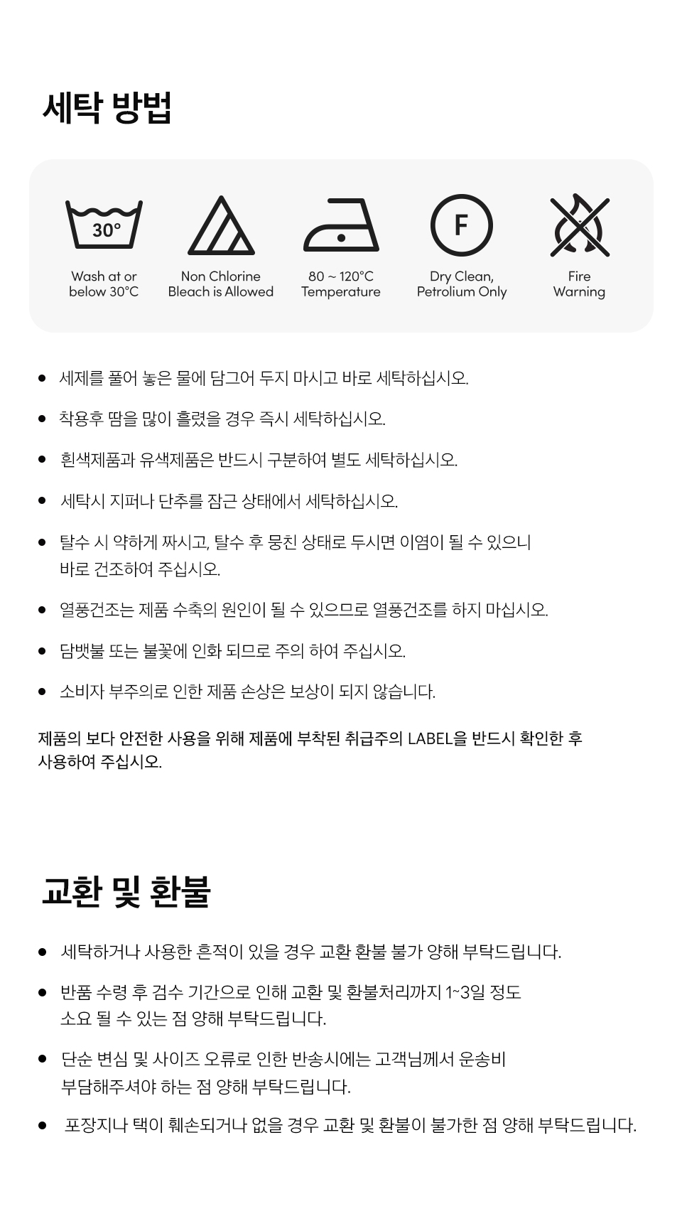 교환 및 반품 안내