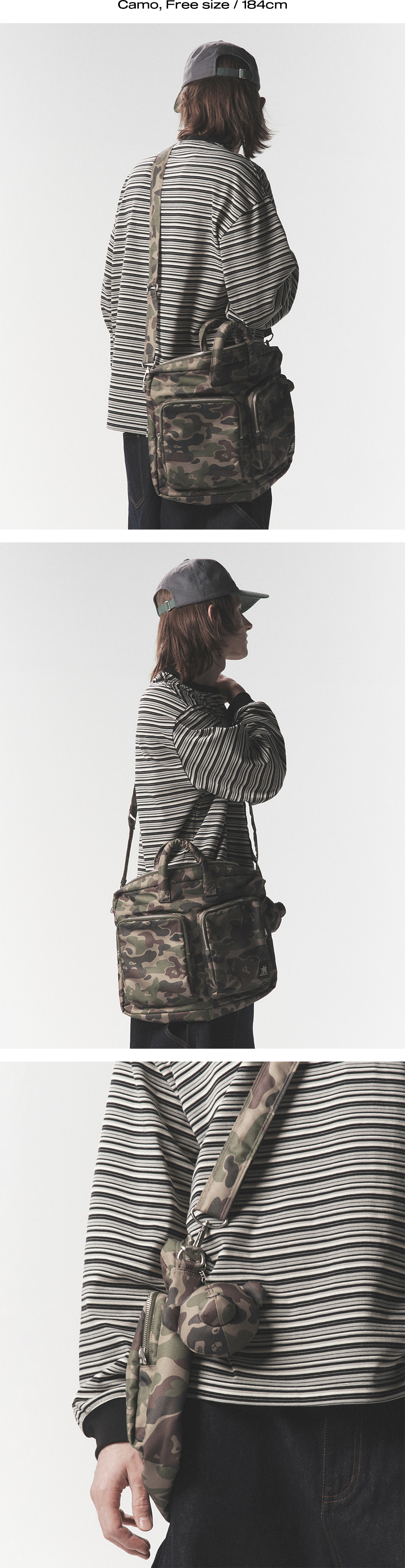 피지컬 디파트먼트 베어 키링 나일론 멀티 포켓 크로스백 (L) 블랙