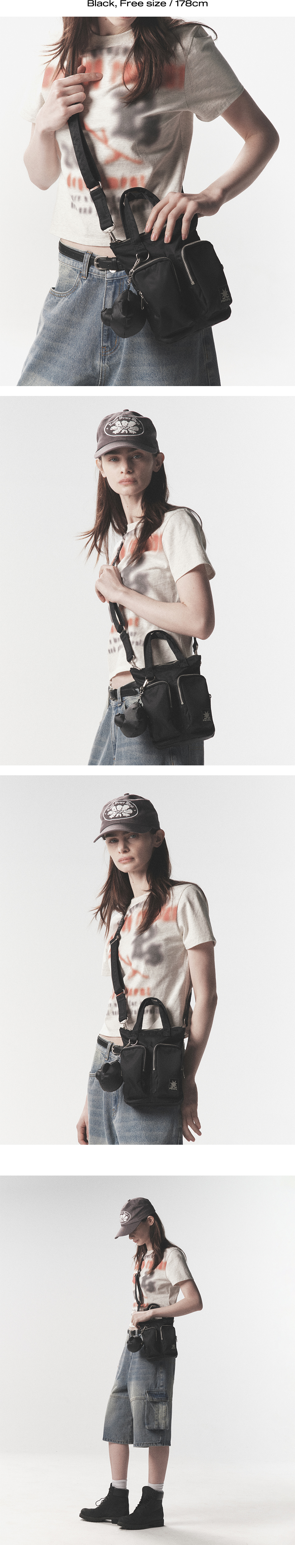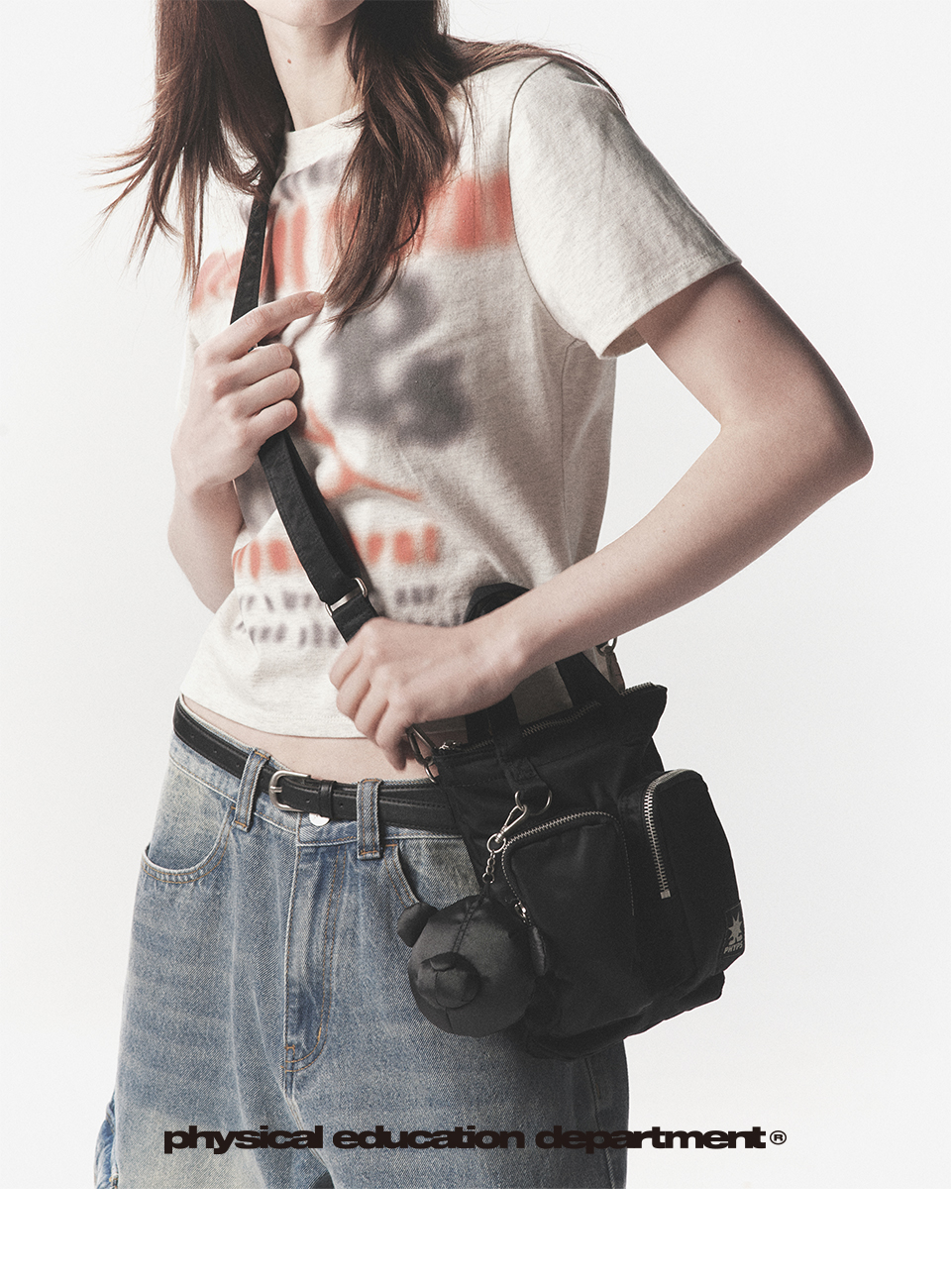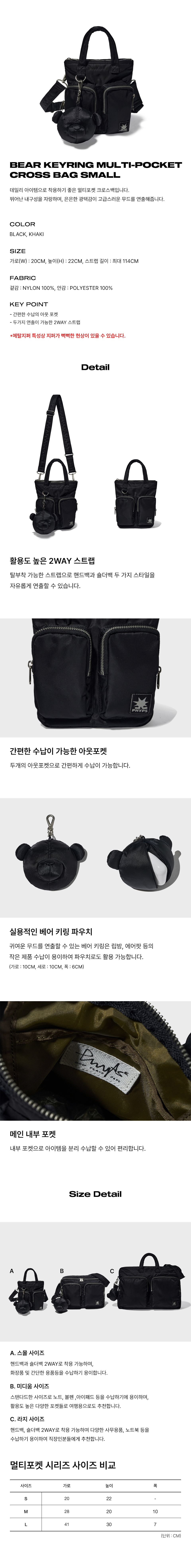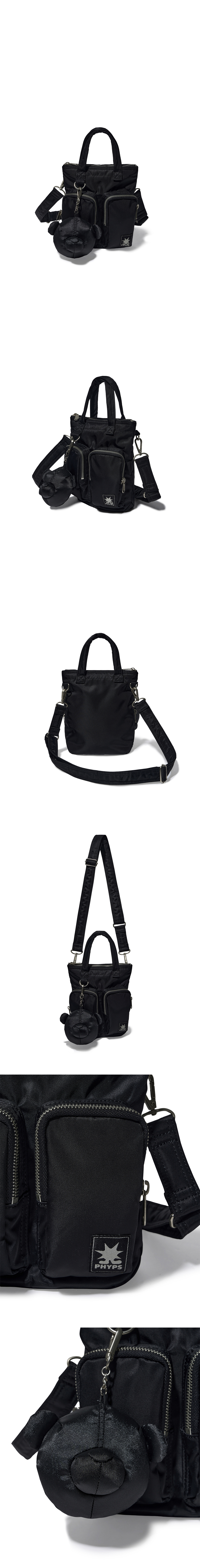 피지컬 디파트먼트 베어 키링 나일론 멀티 포켓 크로스백 (S) 블랙