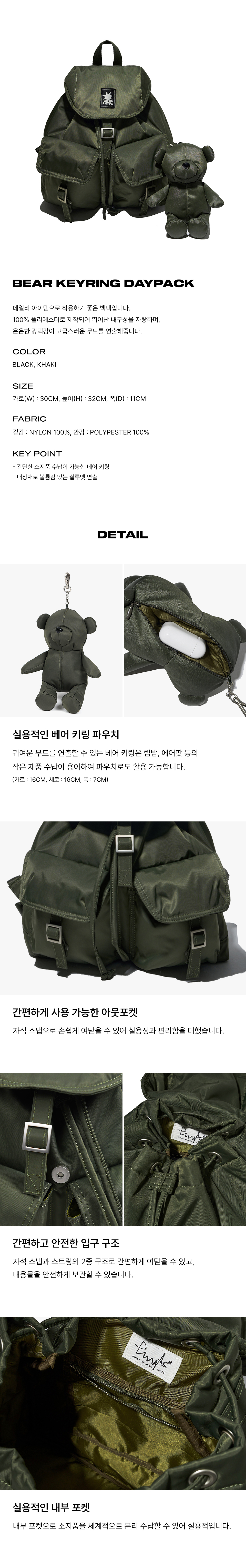 피지컬 디파트먼트 베어 키링 데이백 카키