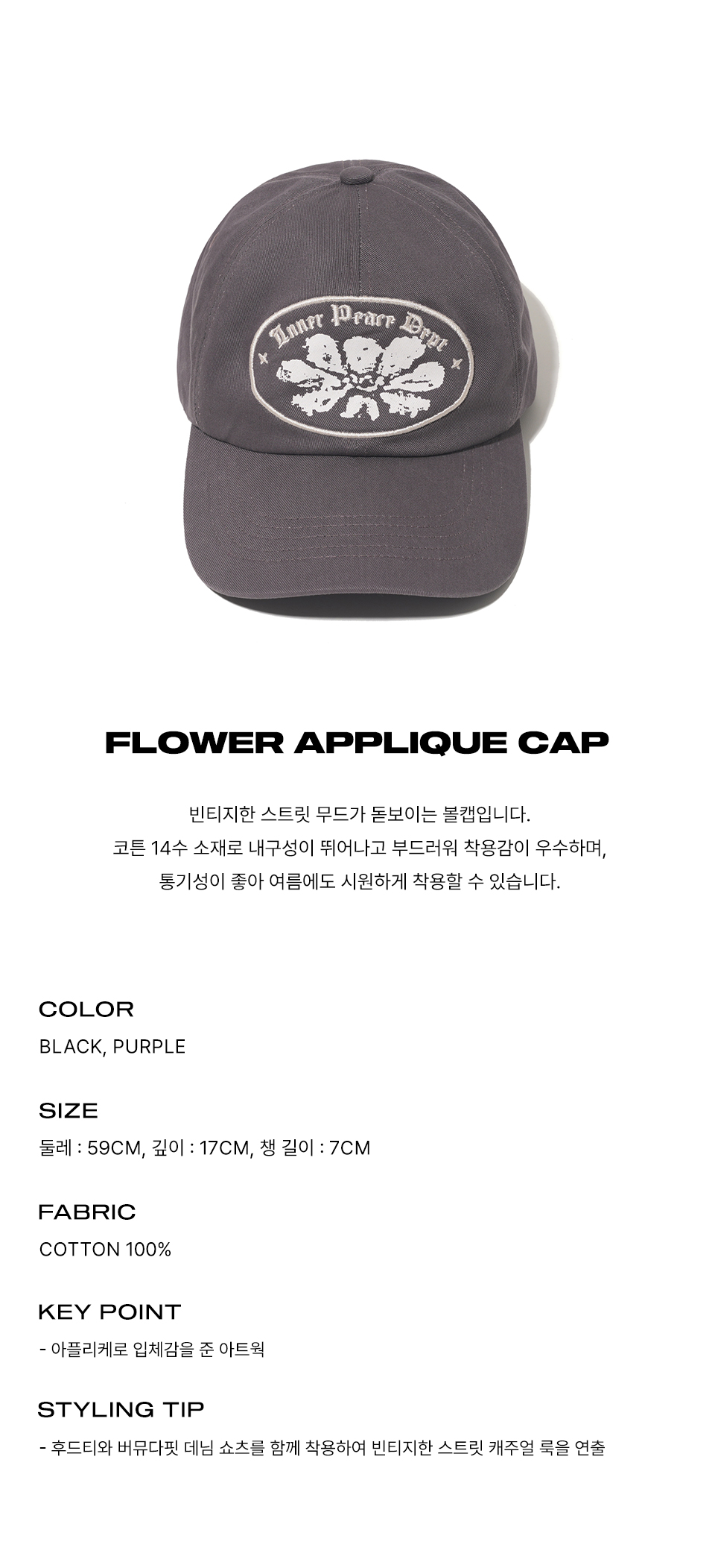피지컬 디파트먼트 플라워 아플리케 볼캡 퍼플