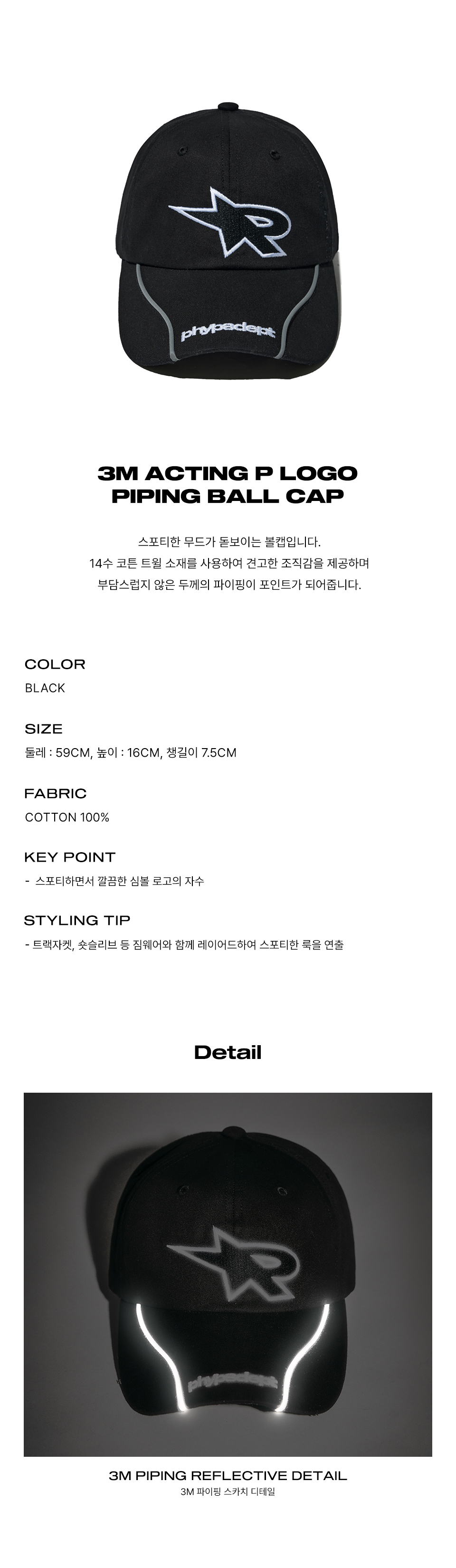 피지컬 디파트먼트 리플렉티브 파이핑 액팅 로고 볼캡 블랙