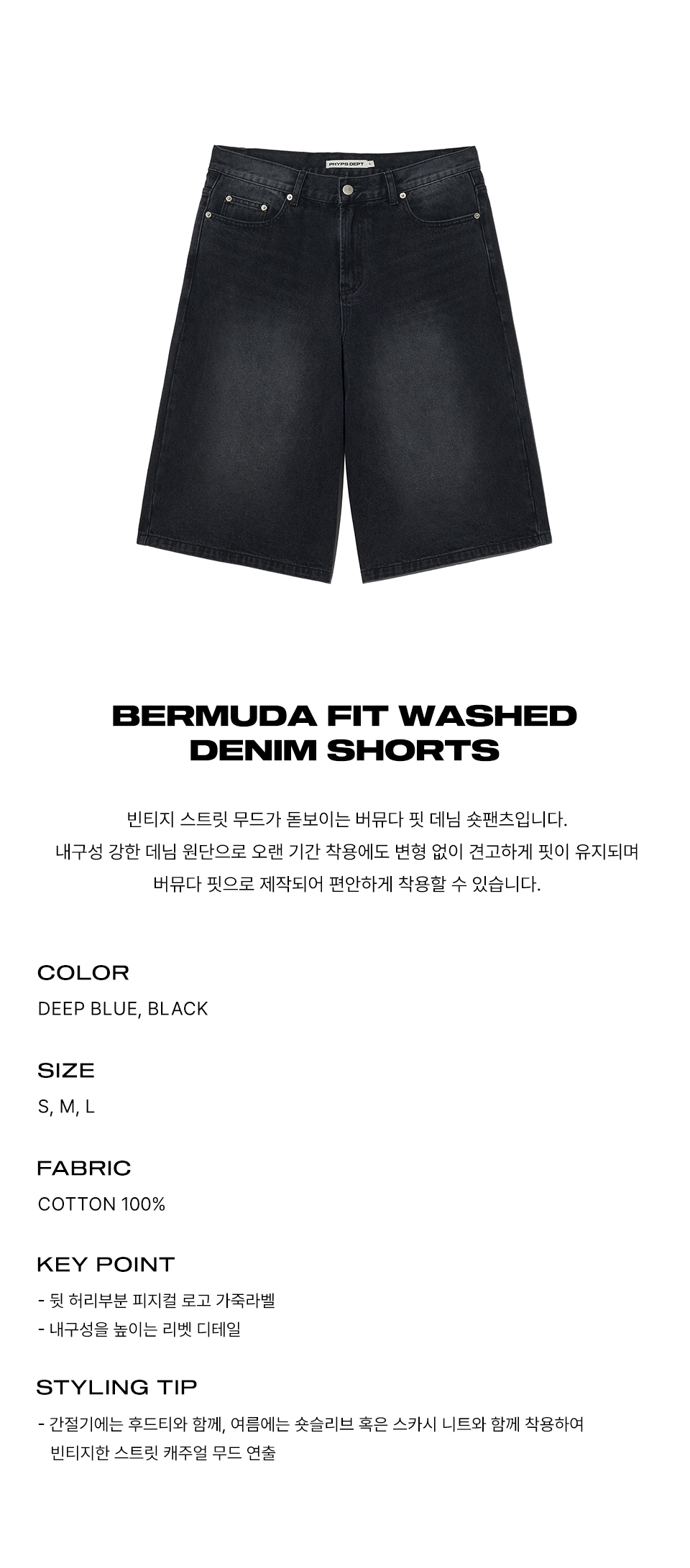 피지컬 디파트먼트 워시드 버뮤다 데님쇼츠_블랙