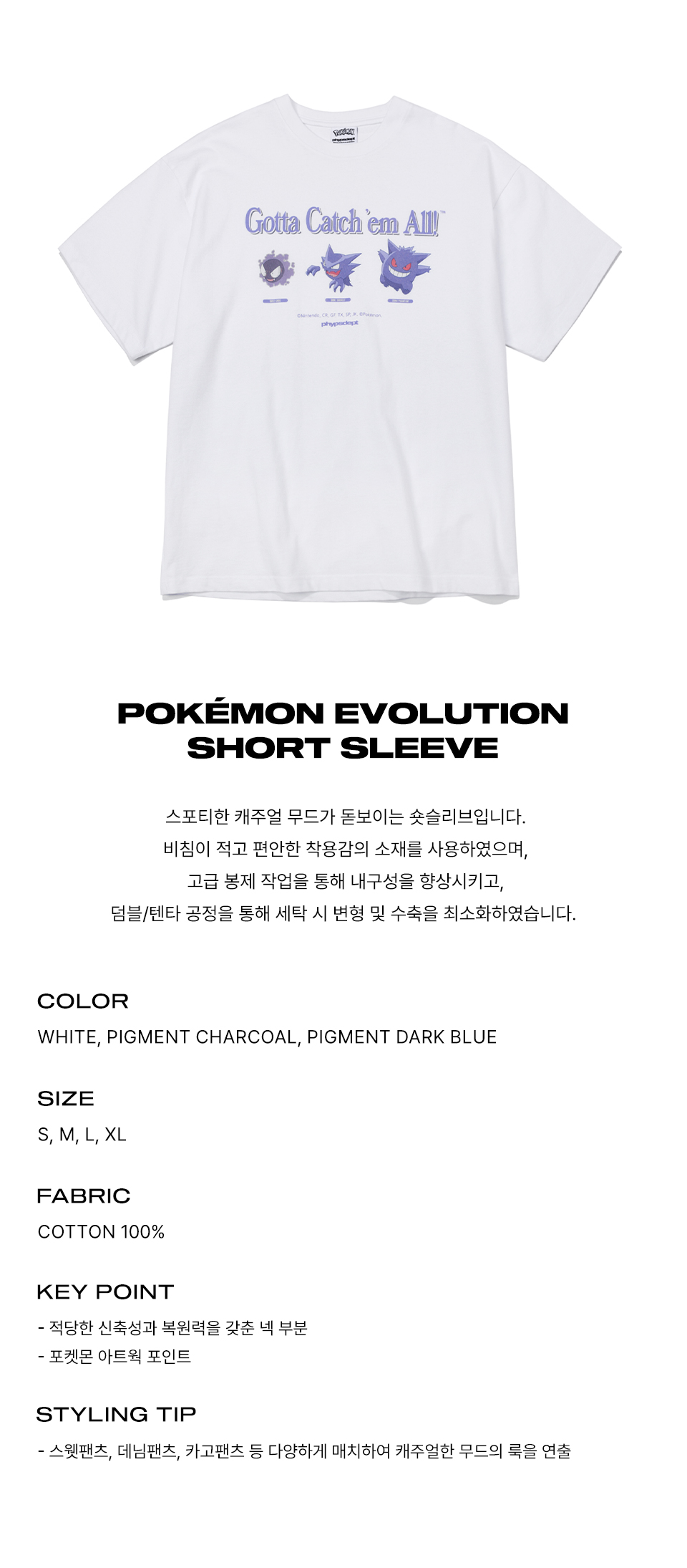 피지컬 디파트먼트 포켓몬스터 에볼루션 숏슬리브 화이트