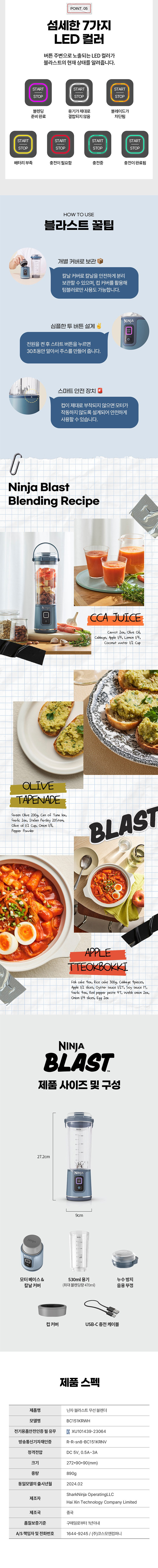 샤크닌자 닌자 무선 블라스트 포터블 블렌더 BC151KR 화이트