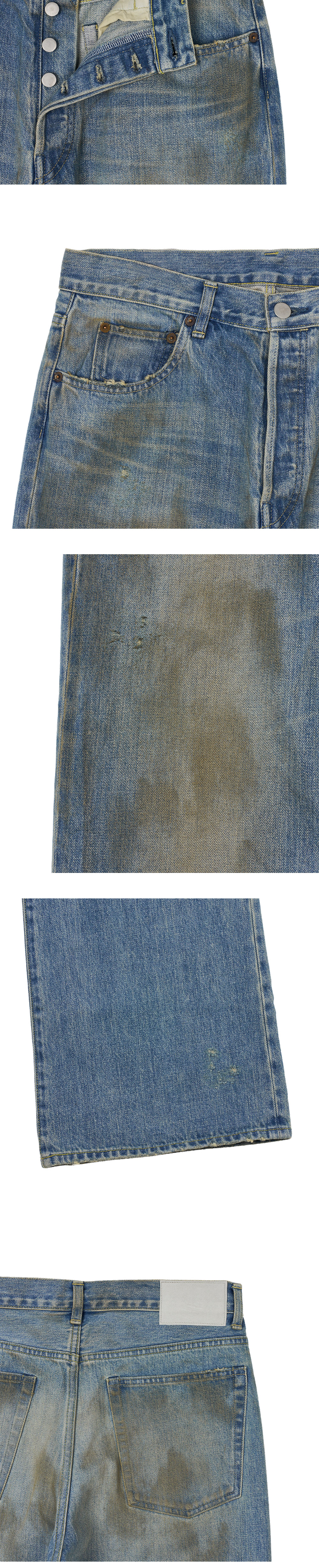 독특한 가공감이 특징인 슈타인의 플레어 데님 진입니다. - 스톤 워시, 블리치, 오버다이, 스프레이, 수작업 데미지 등 다양한 가공 과정을 거쳐 깊이 있는 데님 표현 - 자연스러운 에이징 - 레귤러 핏 - 플레어 실루엣 - 12온스 빈티지 데님 - 버튼 플라이 여밈