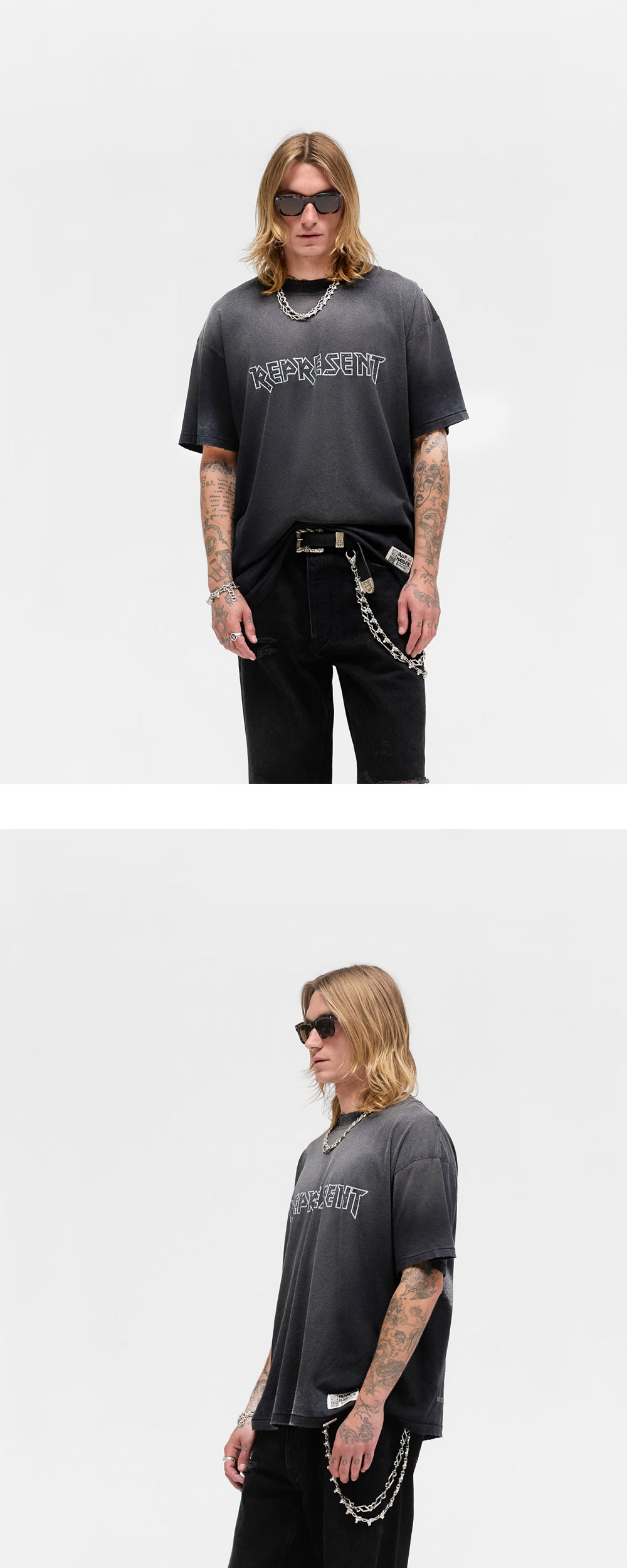 라이브 싱글 Infinite Dreams에 대한 대담한 헌정을 담은 리프레젠트 x 아이언 메이든 인피니트 드림즈 티셔츠 에이지드 블랙 컬러입니다. -Aged Black 컬러웨이 -오버사이즈 핏 -드롭 숄더 디자인 -160GSM 슬럽 저지 -라인스톤 스터드 Represent 로고 -Infinite Dreams 백 그래픽 -크랙 & 스크린 프린트 효과 -리브드 칼라 -래더 베이스볼 스티치가 적용된 디스트레스 헴 -밑단 시그니처 메탈 바 -Iron Maiden × Represent 50주년 칼리코 라벨 *모델은 185cm, 78kg 이며 M사이즈를 착용했습니다.*