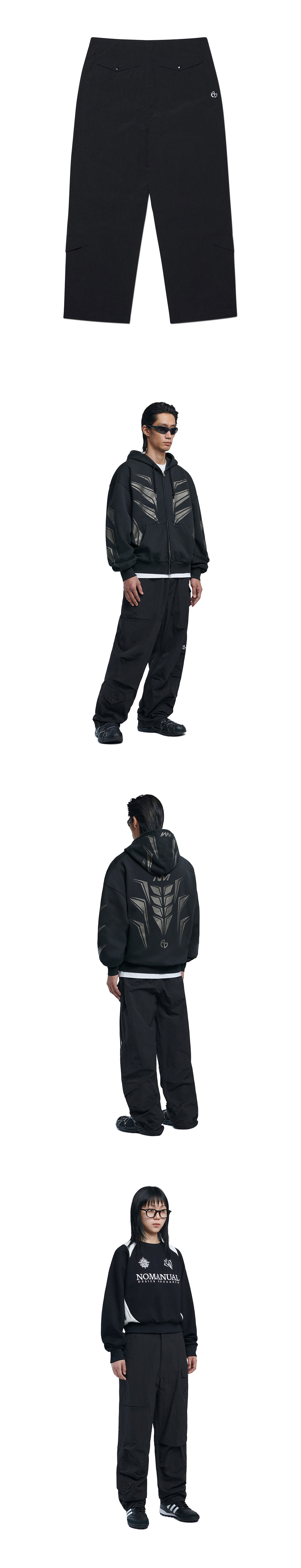 MODEL MAN : 175CM ( L SIZE ) WOMAN : 163CM ( XS SIZE ) NYLON 50% COTTON 50% *두꺼운 폴리백 특성상 옷에 슬립제가 묻어나올 수 있습니다. 어두운 색 계열의 상품 구매시 보이는 슬립제는 불량의 사유가 아님을 알려드립니다.