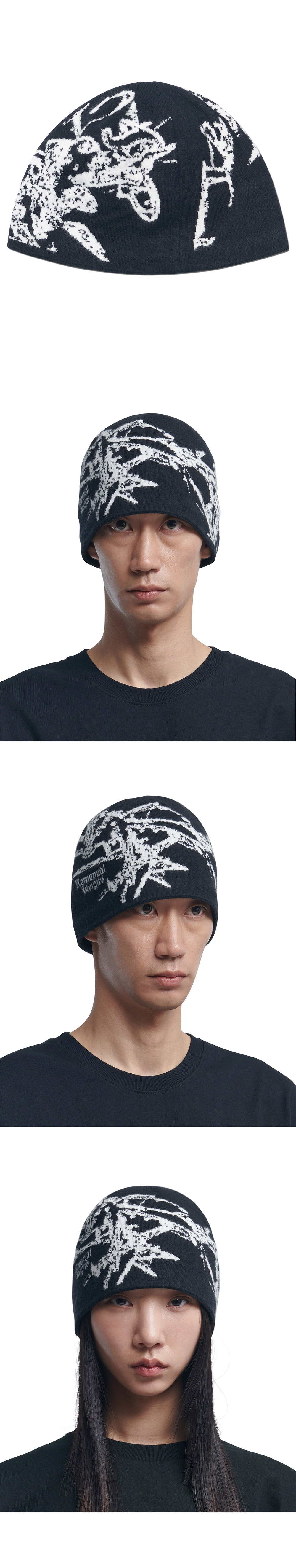 노매뉴얼 그래픽 자카드 비니 블랙