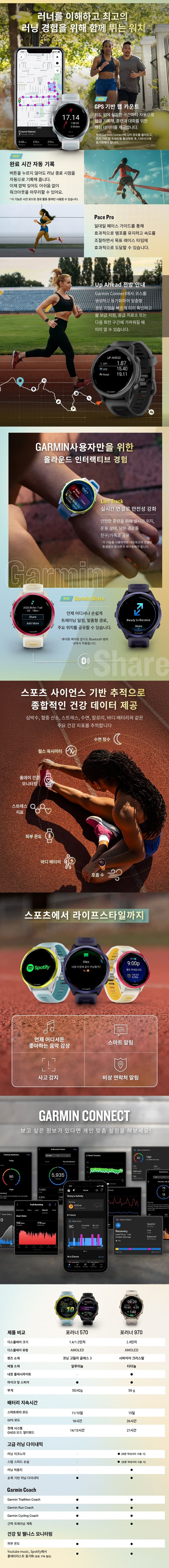[10% 적립] 가민 포러너 570 42mm 러닝 GPS 스마트워치 화이트 스톤