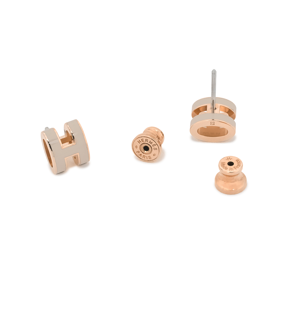 (W) Hermes Mini Pop H Earrings Rose Gold & Marron Glace