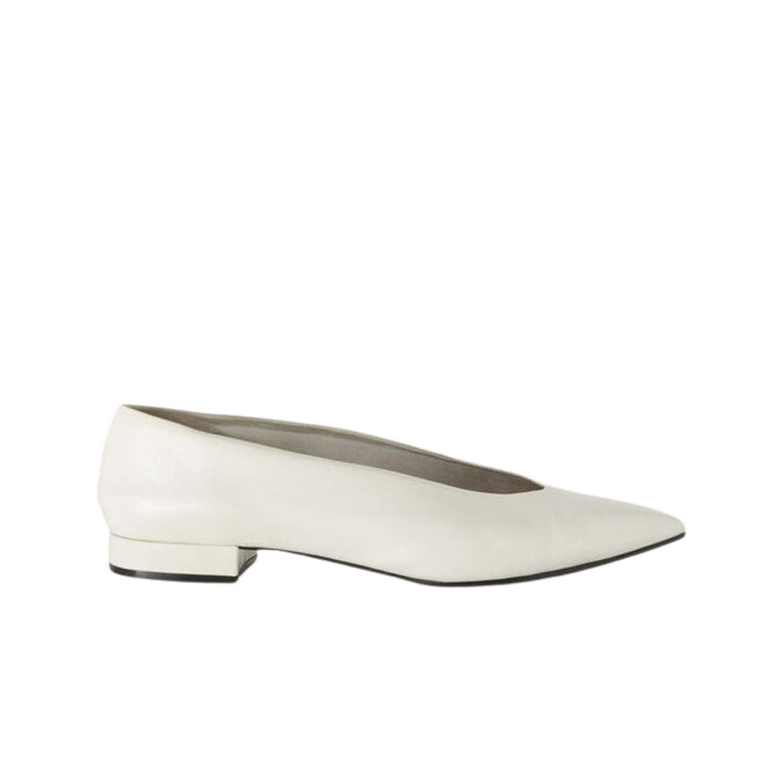 (W) 로로 피아나 카프스킨 레베카 발레 플랫 라이트 화이트 밀크
