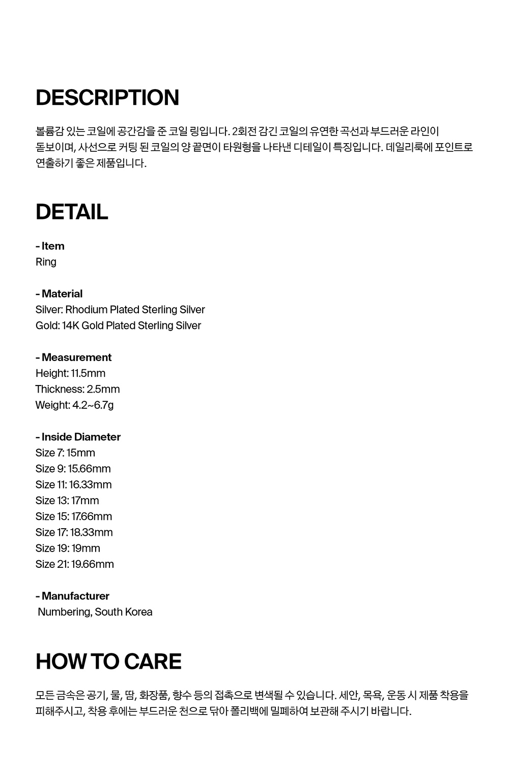 넘버링 #8402 볼륨 코일 링 (2 Turns) 실버