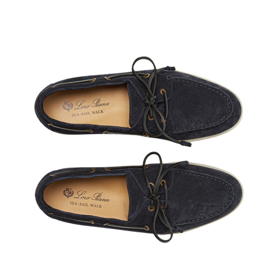 로로 피아나 로우 레더 씨세일 워크 로퍼 네이비 블루