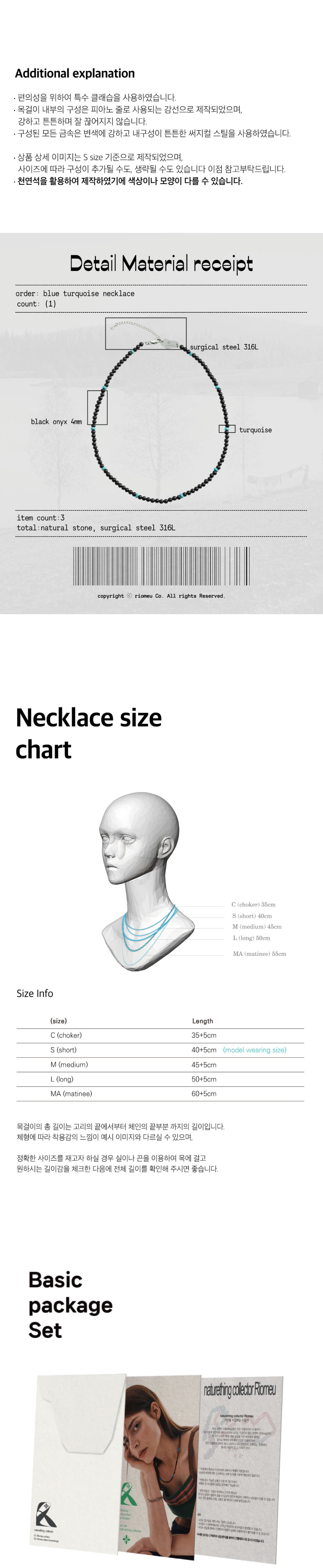 리오므 블루 터키석 목걸이
