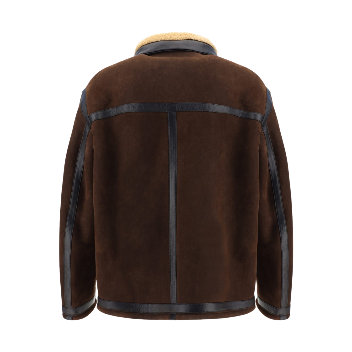 Fendi FF Pocket Detail Shearling Jacket Brown