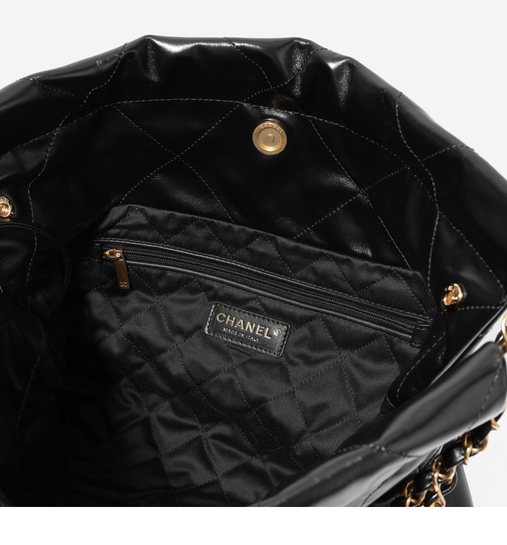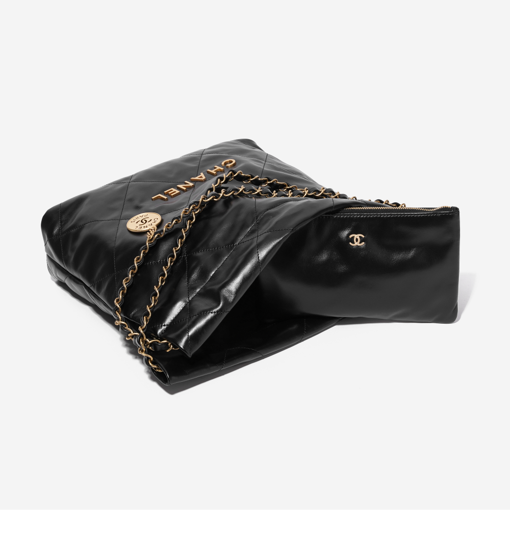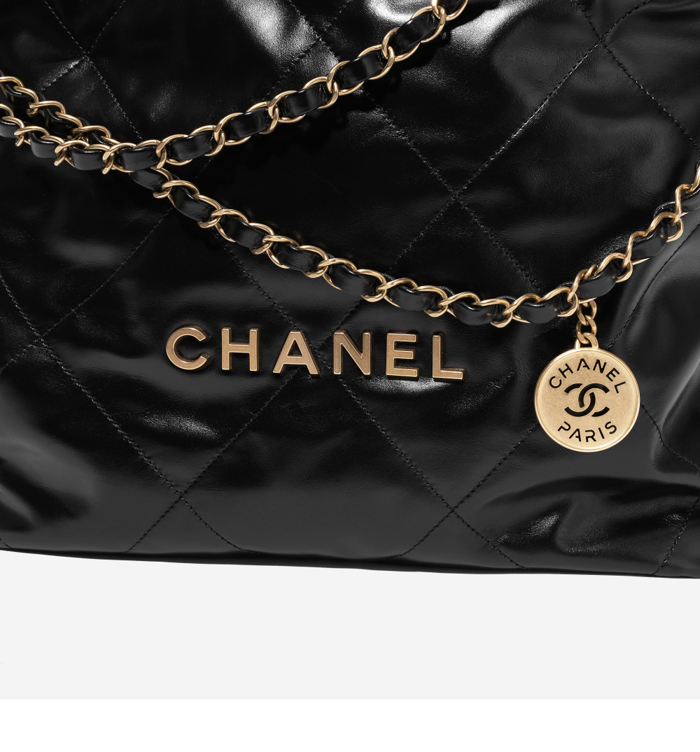 샤넬 22 스몰 핸드백 샤이니 카프스킨 & 골드 메탈 블랙