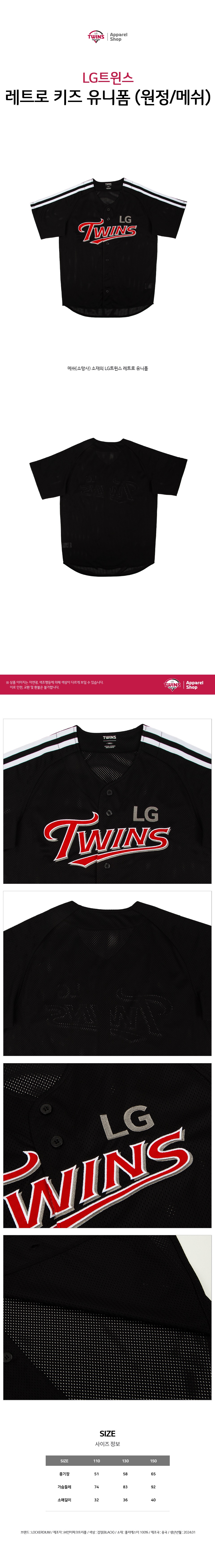 엘지 트윈스 컬렉션 레트로 키즈 유니폼 원정 매쉬