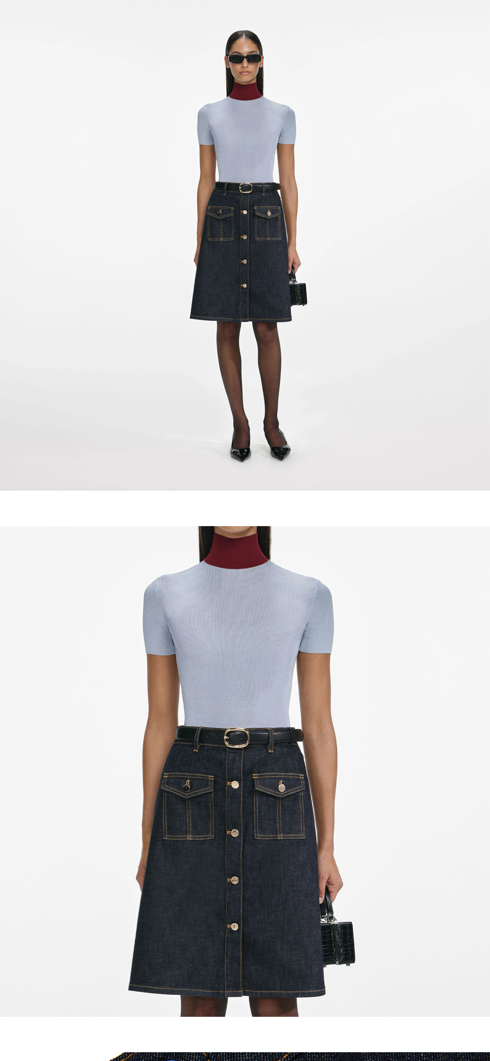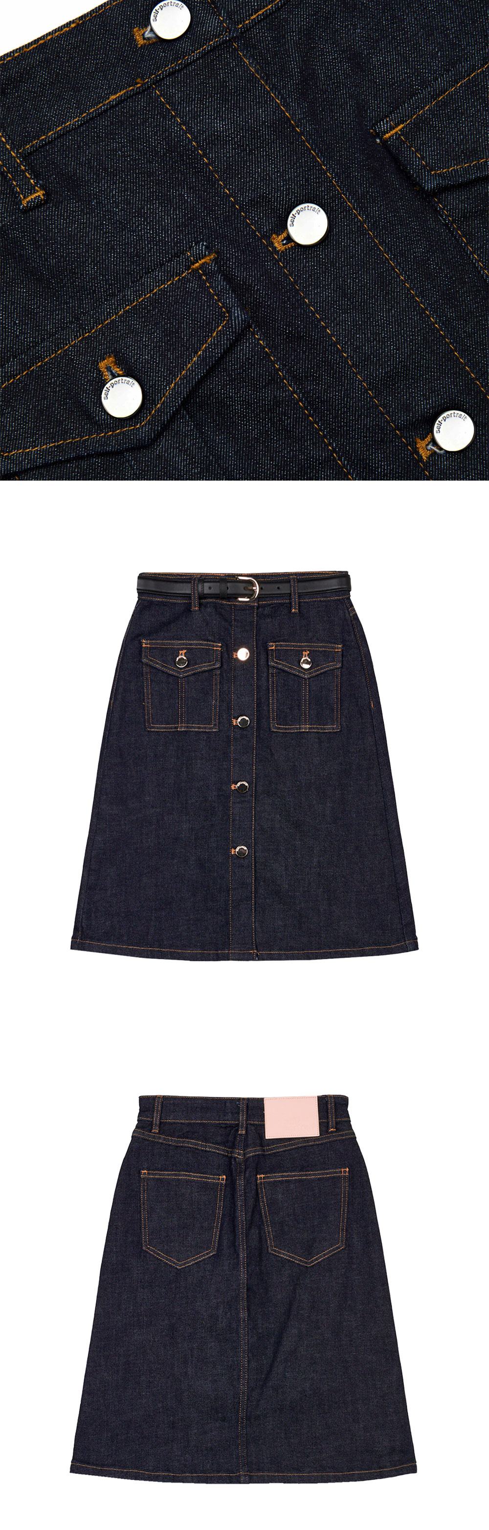 셀프 포트레이트 우먼 데님 벨티드 미디 스커트 인디고- 25FW