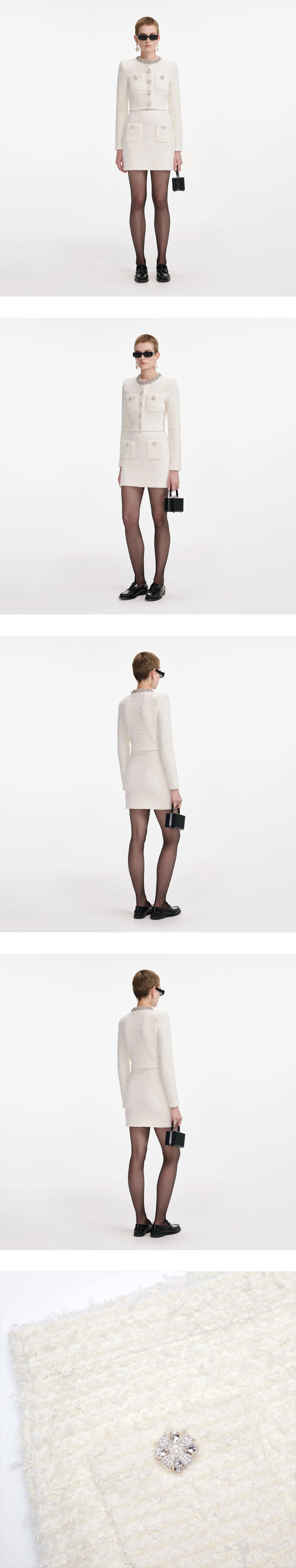 셀프 포트레이트 우먼 텍스쳐 니트 미니 스커트 크림- 25FW