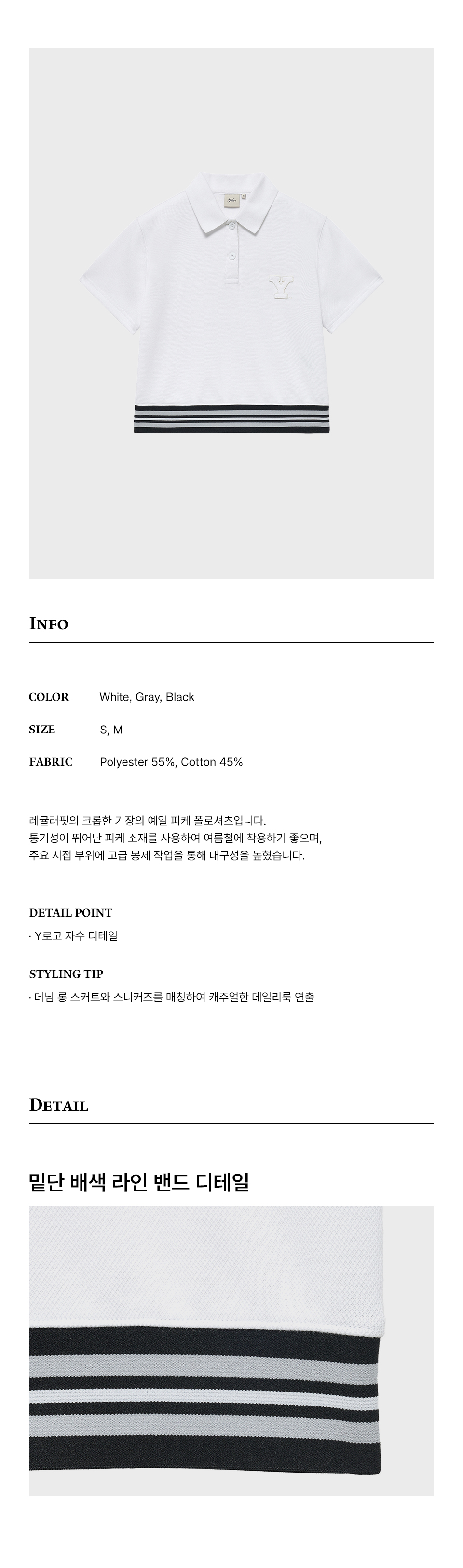 예일 우먼즈 크롭 밴딩 폴로 셔츠_화이트
