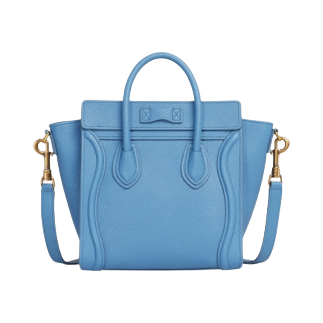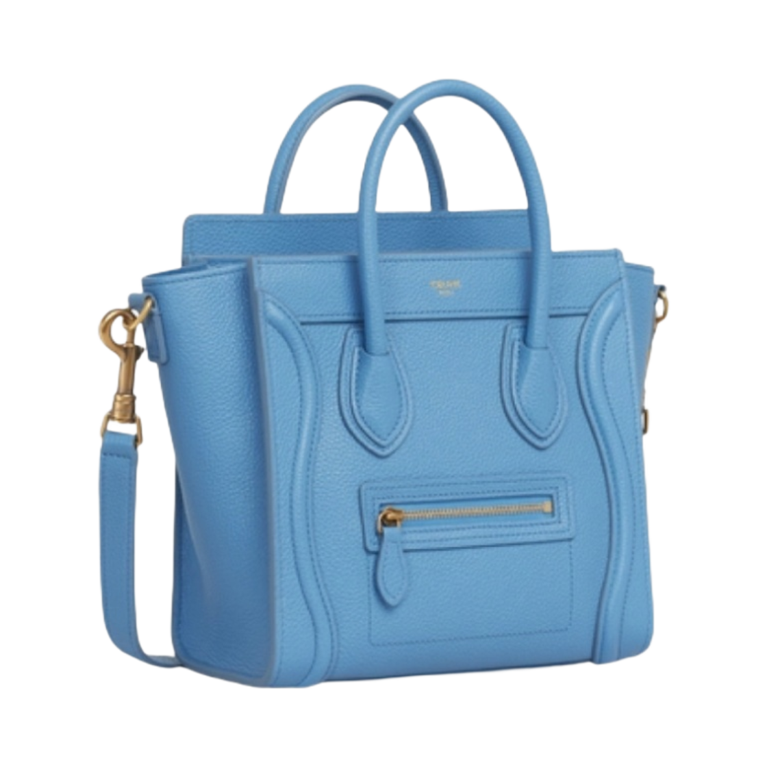 Celine Nano Luggage Bag in Drummed Calfskin Azure