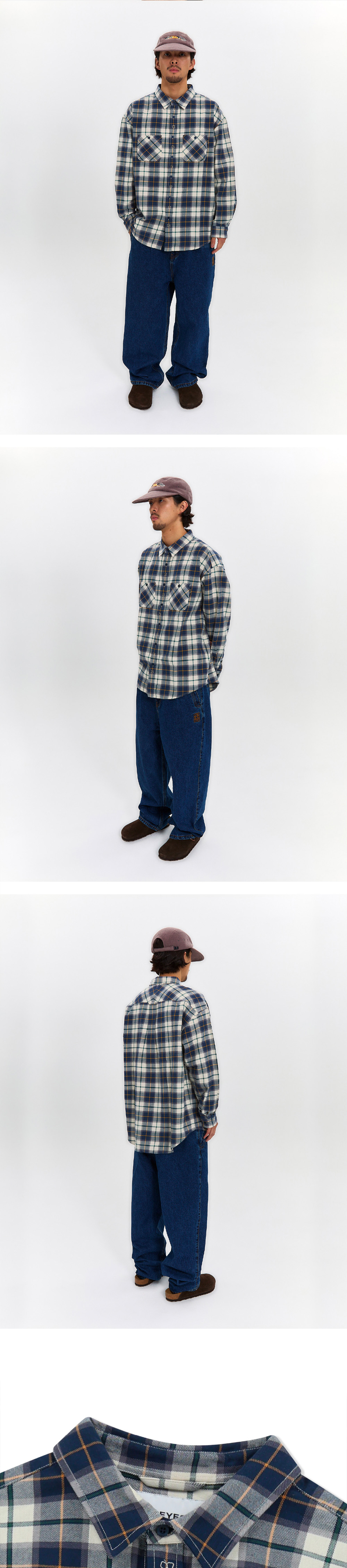 예스아이씨 플롭 체크 셔츠 블루